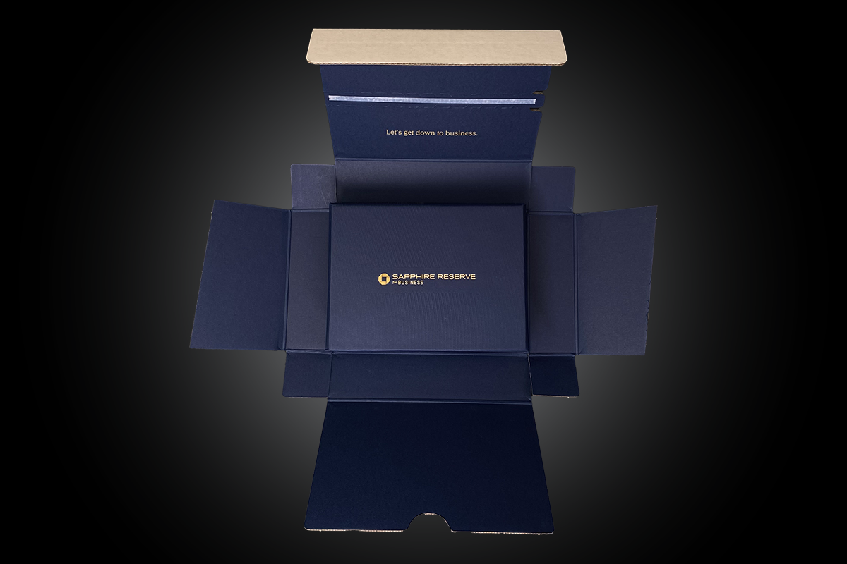 The updated Chase Sapphire Reserve kit are a substantial yet compact design featuring elegant elements and touches. The result is a multi-level unboxing experience to unveil the new card and benefits in a recyclable or reusable package.